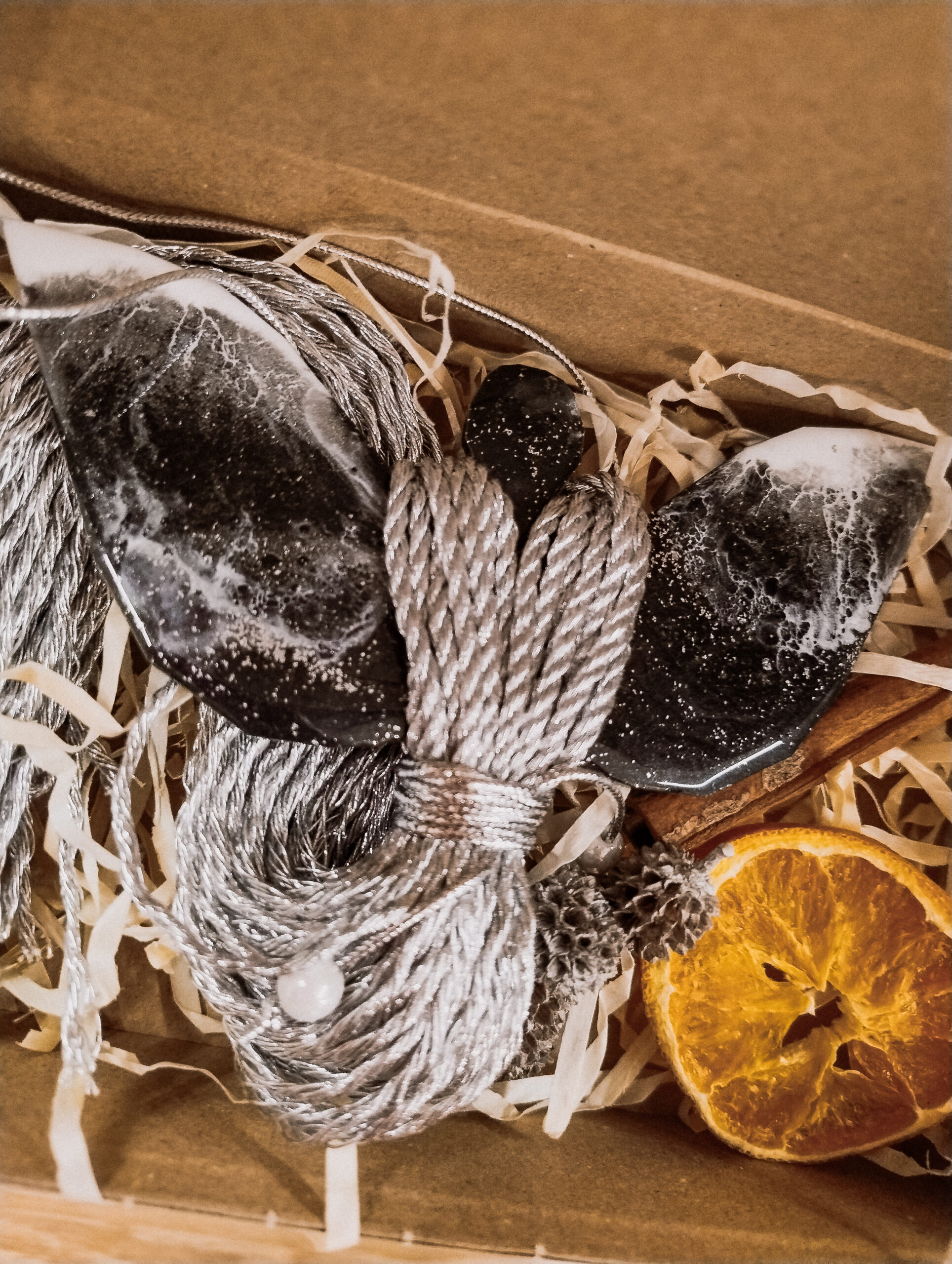 Każdy anioł pakowany jest z największą starannością – w pudełku z naturalnym wypełnieniem i wizytówką. W okresie świątecznym dodaję dodatkowe elementy: suszone pomarańcze, orzechy i inne naturalne dekoracje. Dzięki temu jest od razu gotowy, aby wręczyć go komuś bliskiemu.