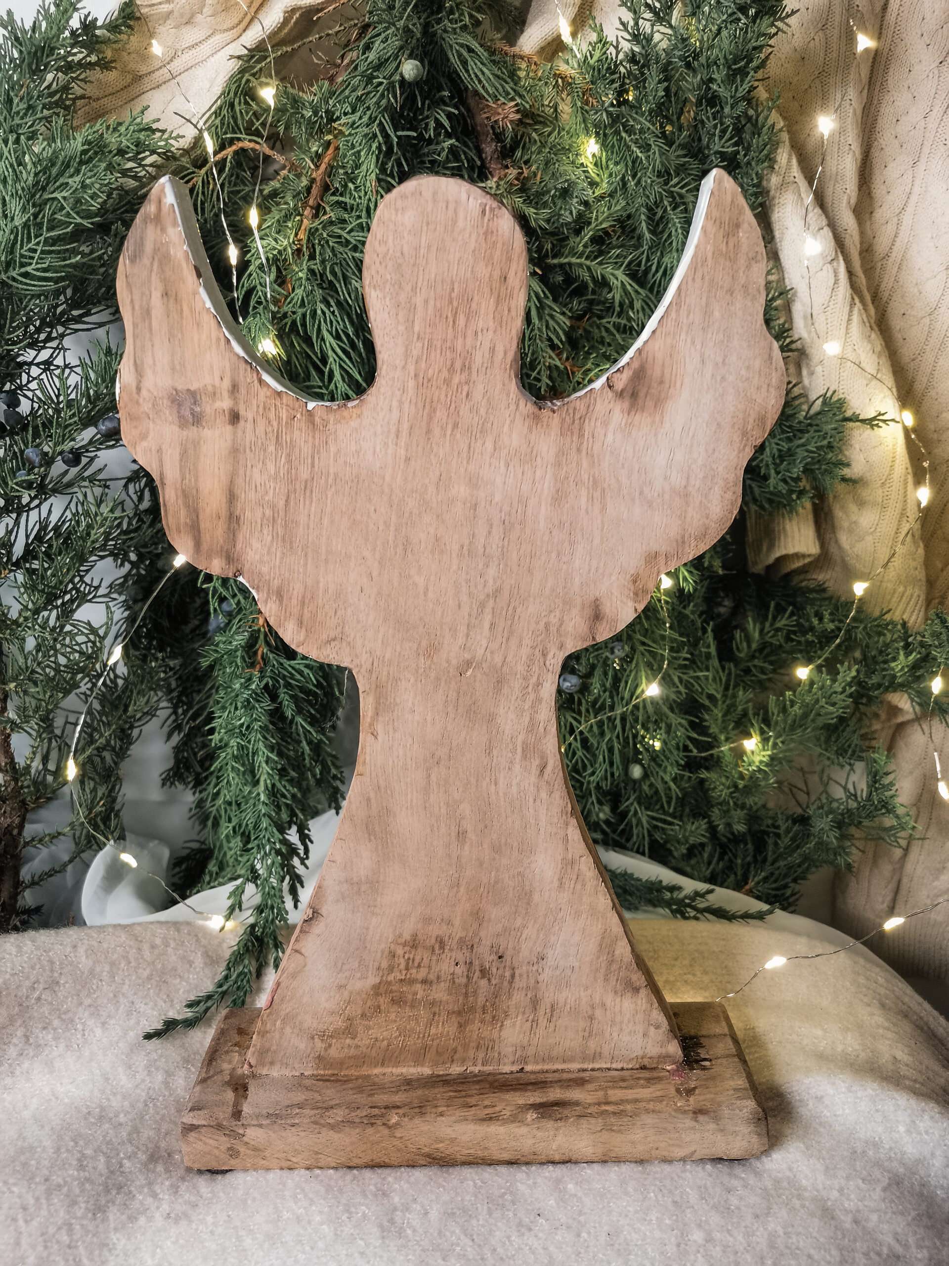 Anioł ma wymiary: 30cm wysokość, 20cm szerokość u podstawy