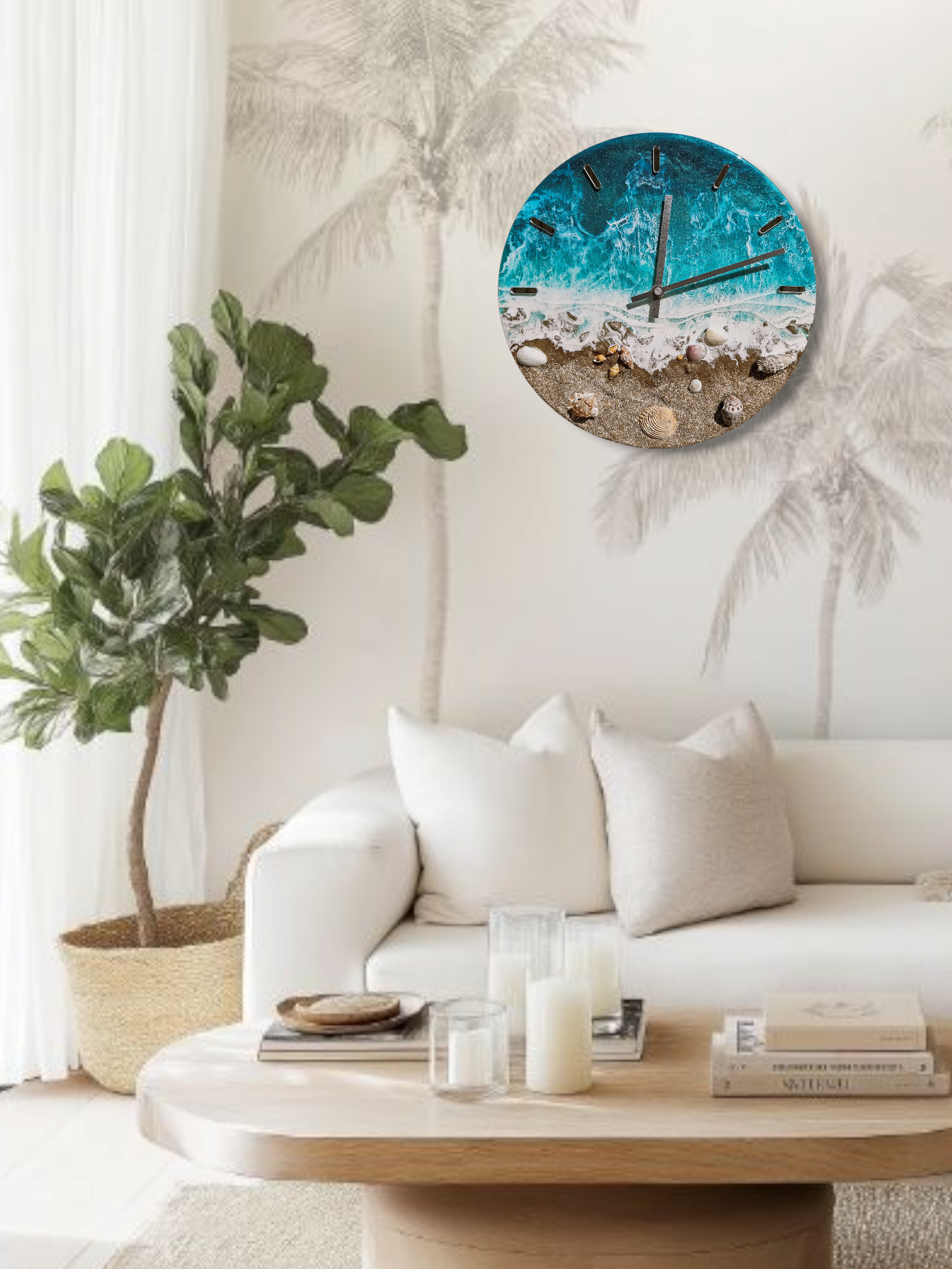 Zegar ścienny „Croatian Beach” to nie tylko dekoracja i funkcjonalność ale również sposób na wyrażenie swojej miłości do oceanu, całej natury i sztuki. Dodaj swojemu wnętrzu odrobinę natury.