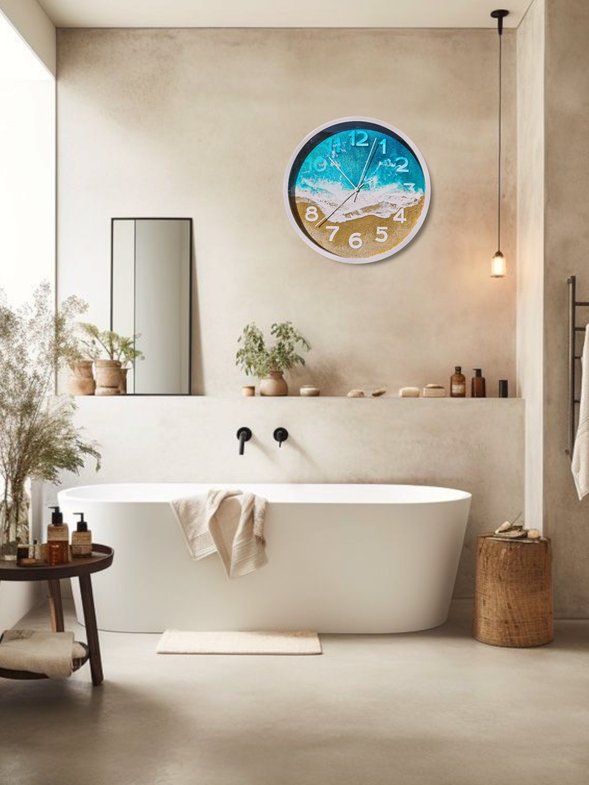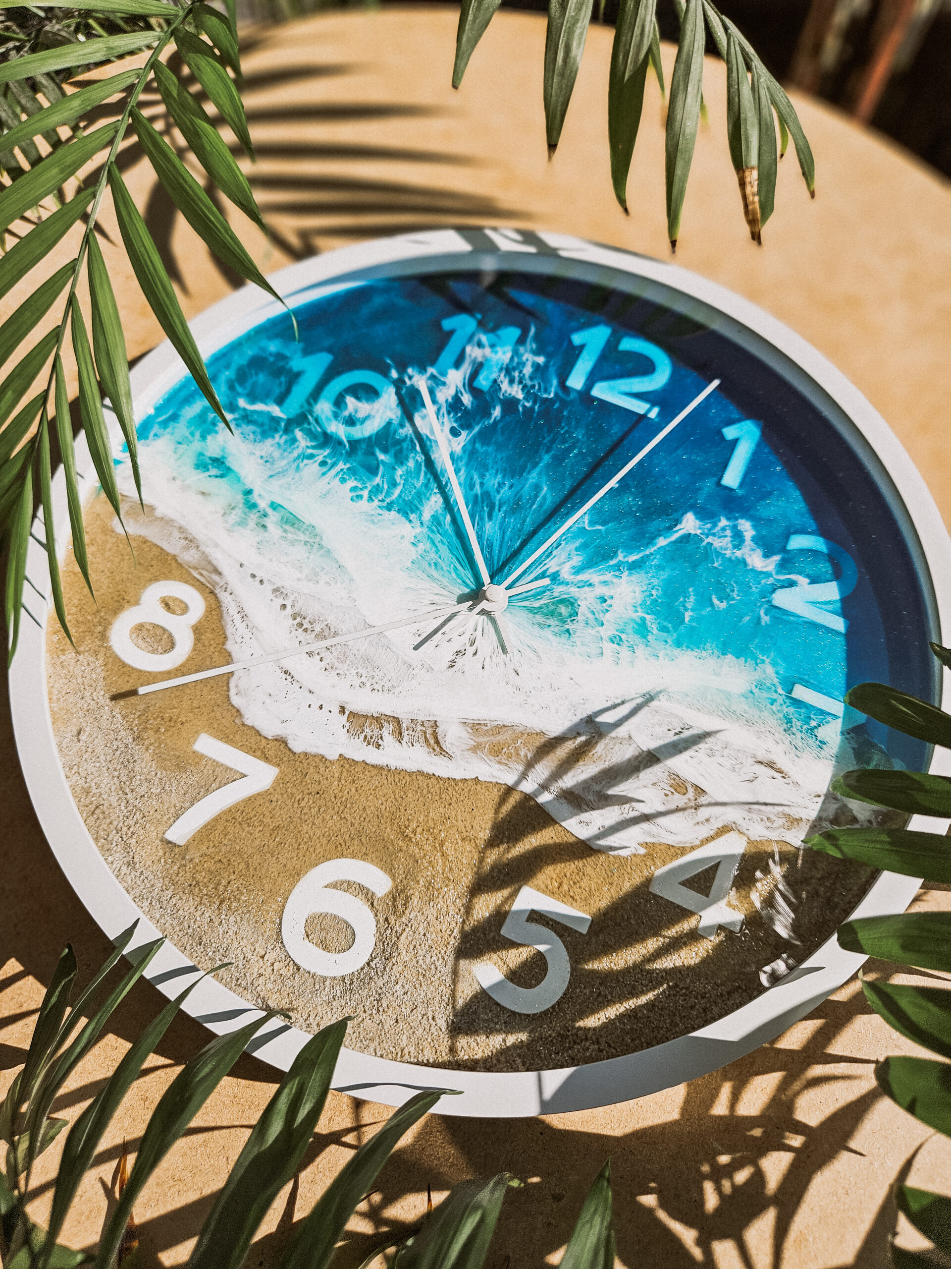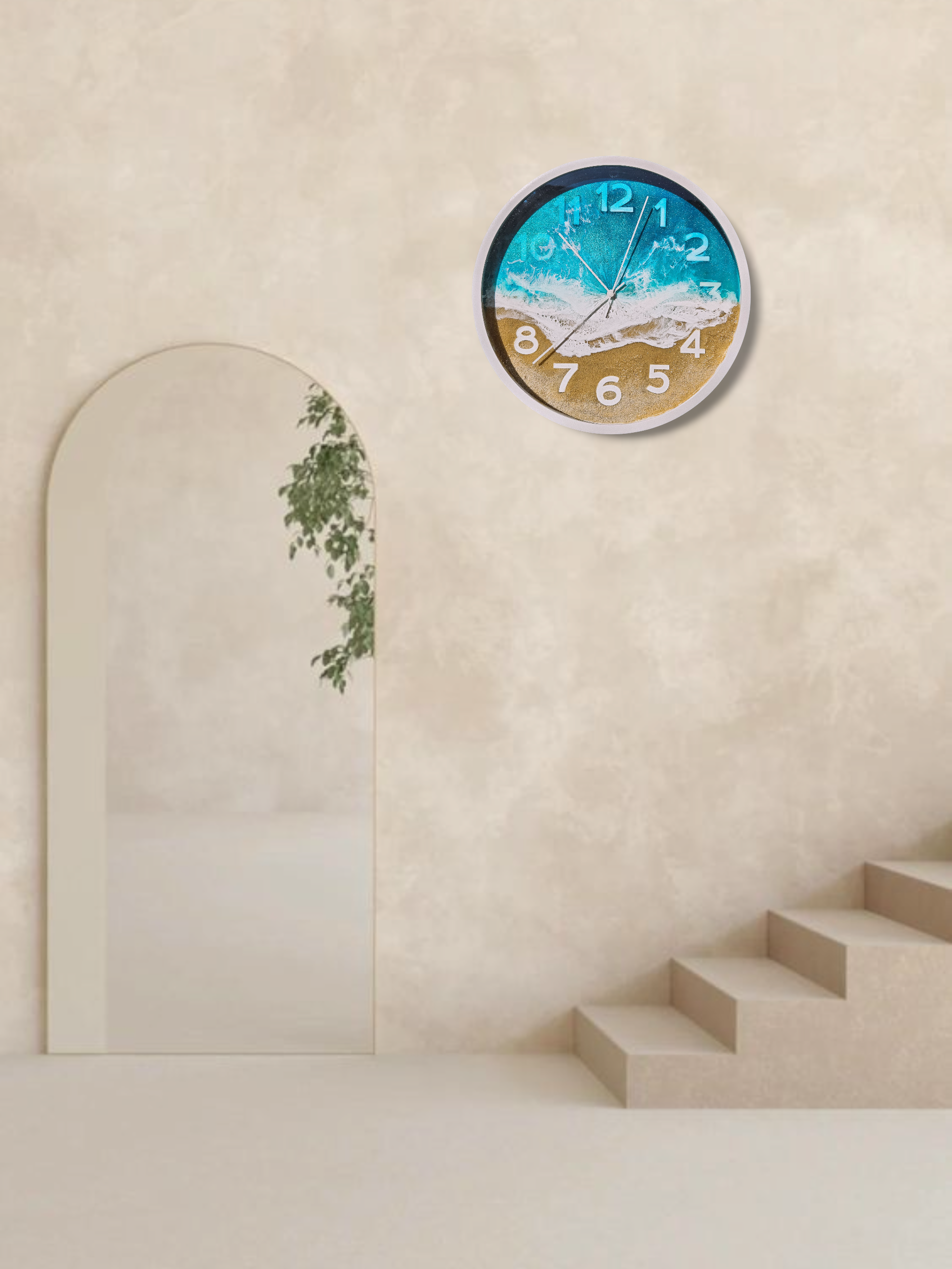 Zegar ścienny z cyframi „Turquoise Beach” to nie tylko dekoracja i funkcjonalność ale również sposób na wyrażenie swojej miłości do oceanu, całej natury i sztuki. Dodaj swojemu wnętrzu odrobinę natury.